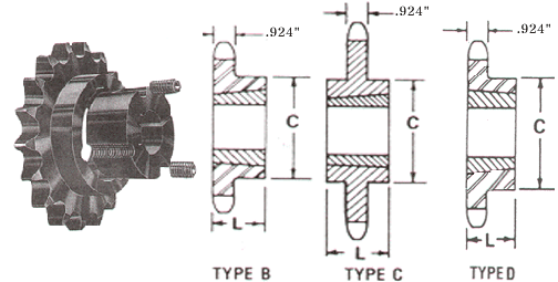 Bore(inches) | Hub(inches) | Weight Lbs. (Approx.) |